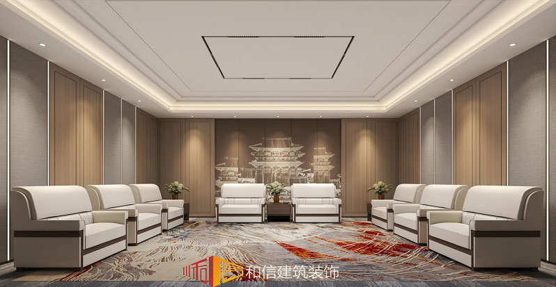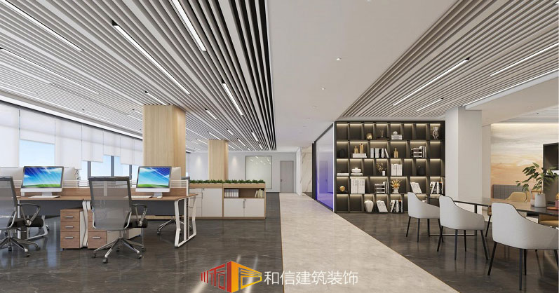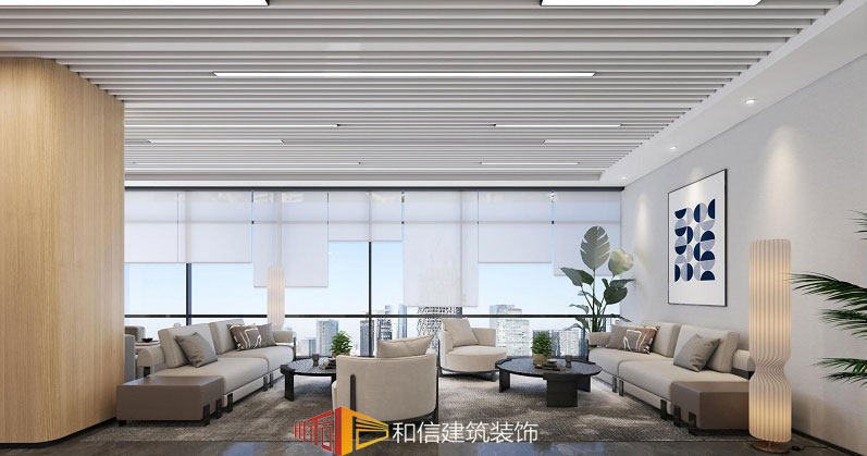 本案由和信裝飾設(shè)計深化與工程施工,通過和信裝飾豐富經(jīng)驗的施工團隊,高質(zhì)量地還原效果圖,布局上該辦公室分為前廳、開放辦公室、會議室、會客廳,循環(huán)靈活的動線鏈接所有的功能區(qū)域,形成一個流動、交互、多模式的彈性空間。