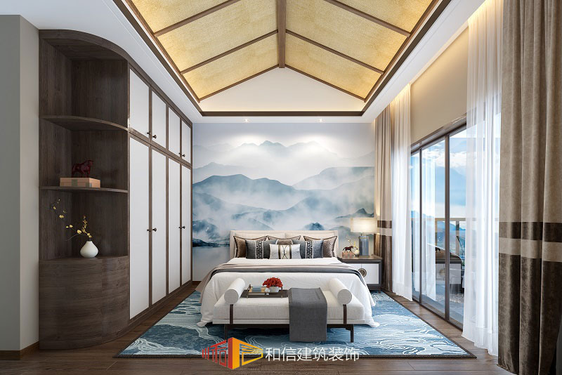 臥室以新中式的手法鋪陳,以自然美景作為點(diǎn)綴,通透而不失大氣,室內(nèi)濃郁的中式氣息,搭配古典色彩的家具,讓古典與現(xiàn)代完美結(jié)合,內(nèi)與外是共生,一室陽(yáng)光、一室清雅,一種意境,一種生活寫(xiě)照。